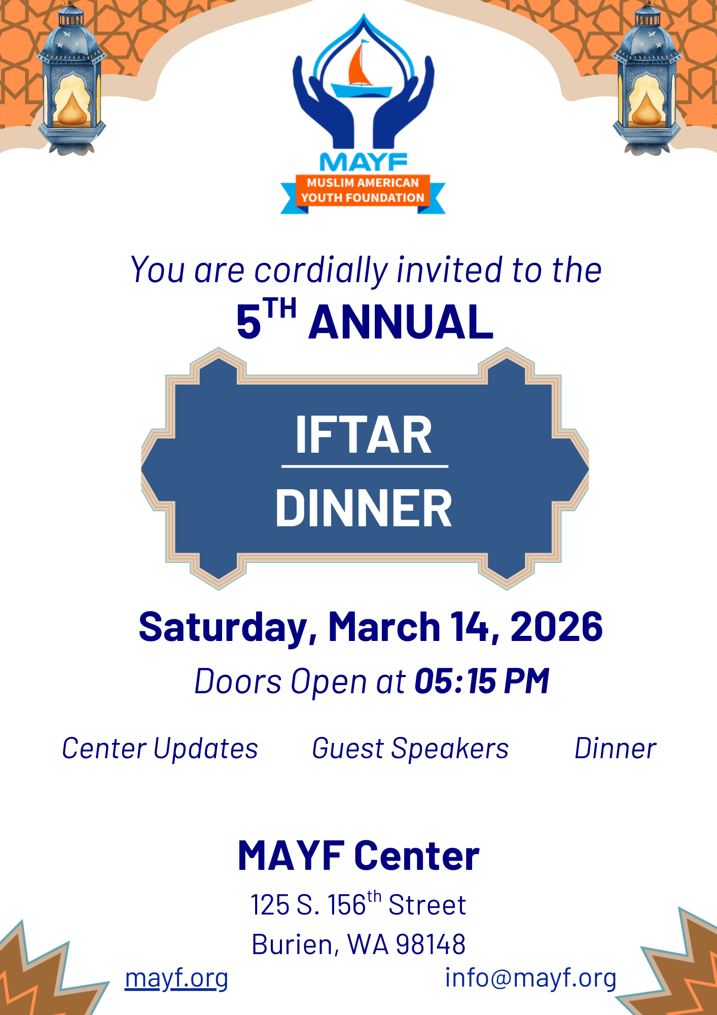 The Muslim American Youth Foundation (MAYF) is a non-profit organization based in King County, and dedicated to empowering and uplifting Muslim-American youth and their communities. Founded by community leaders and activists with 20+ years of experience, MAYF was established in response to the unique challenges facing Muslim-American youth today.